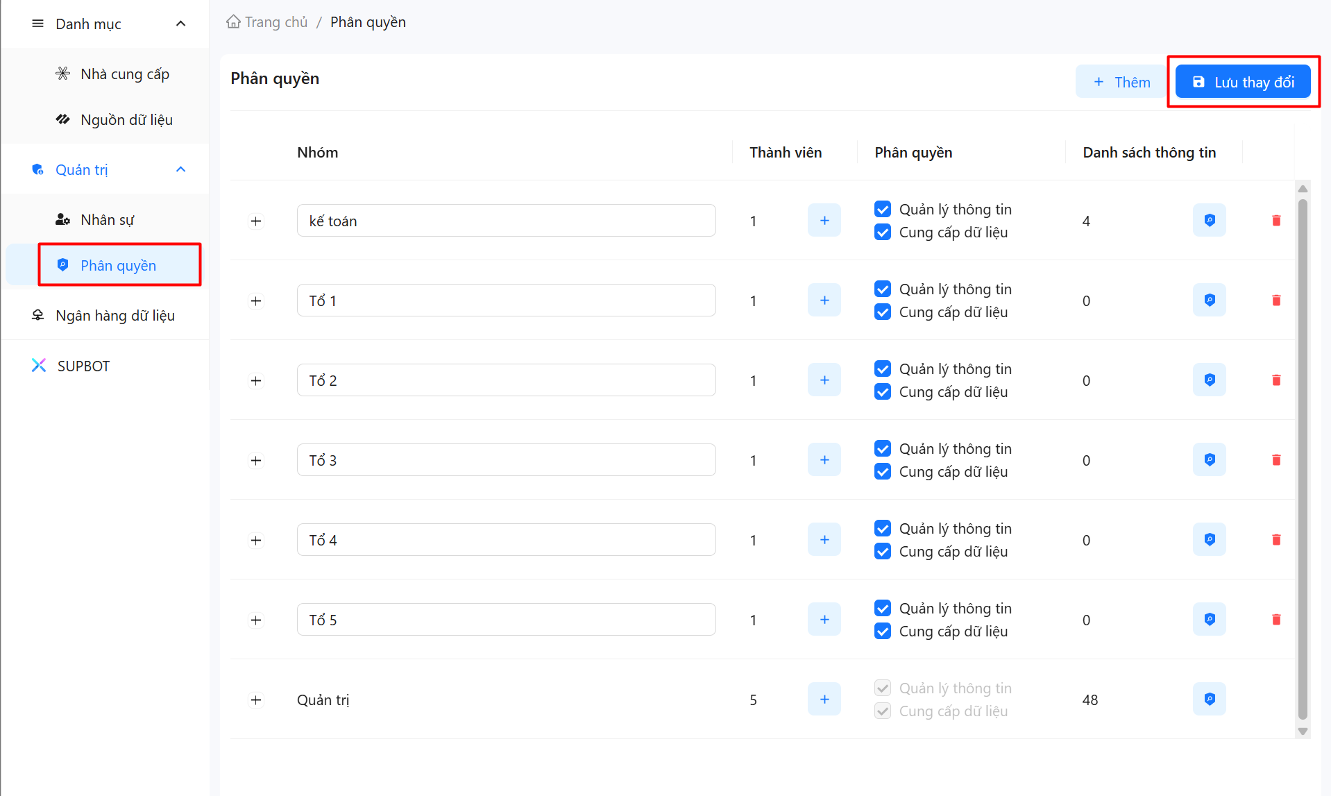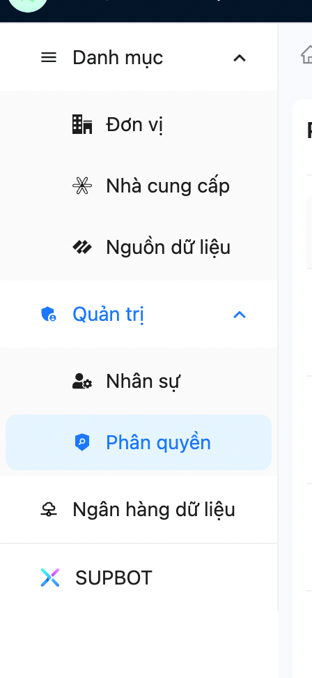 Bước 1: Chọn Quản trị trên thanh menu. Sau đó chọn Phân quyền.