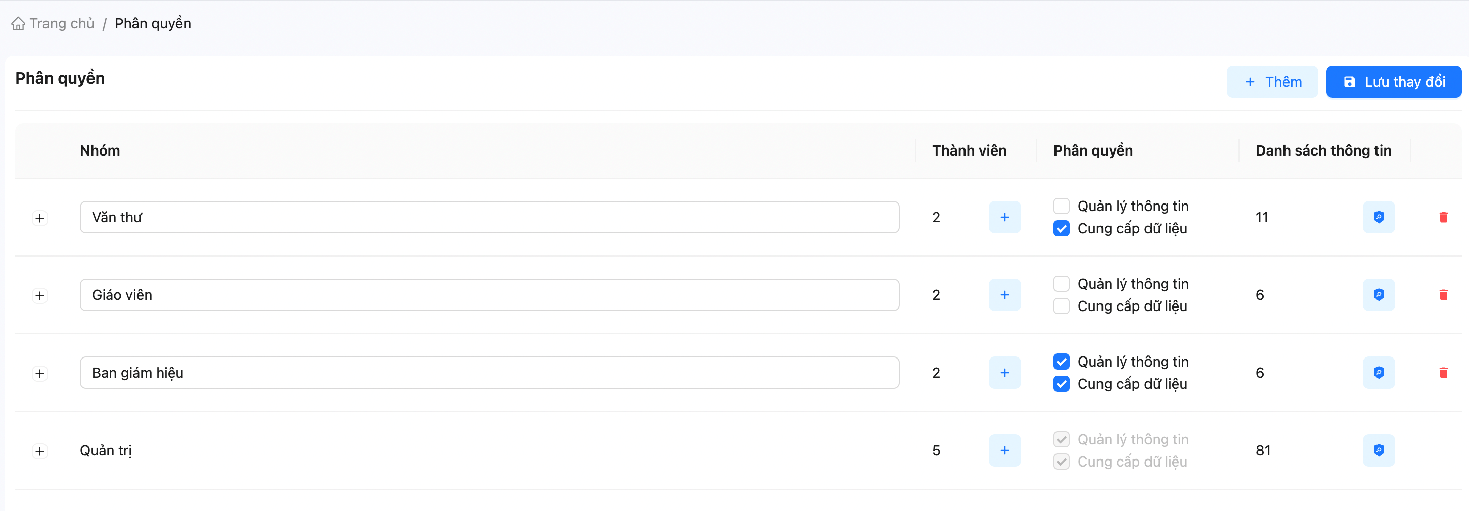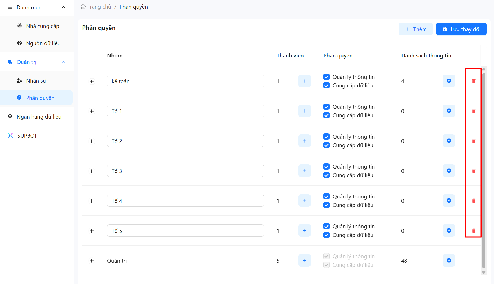 Bước 4: Chọn vào nút thùng rác để thực hiện xoá quyền.
