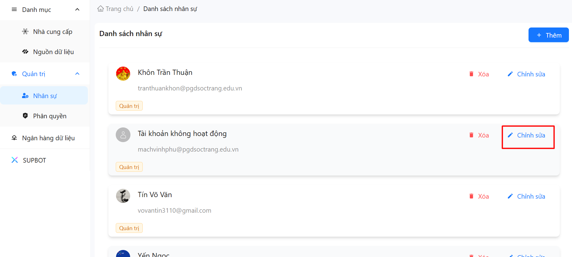 2. Cập nhật/Xóa nhân sự