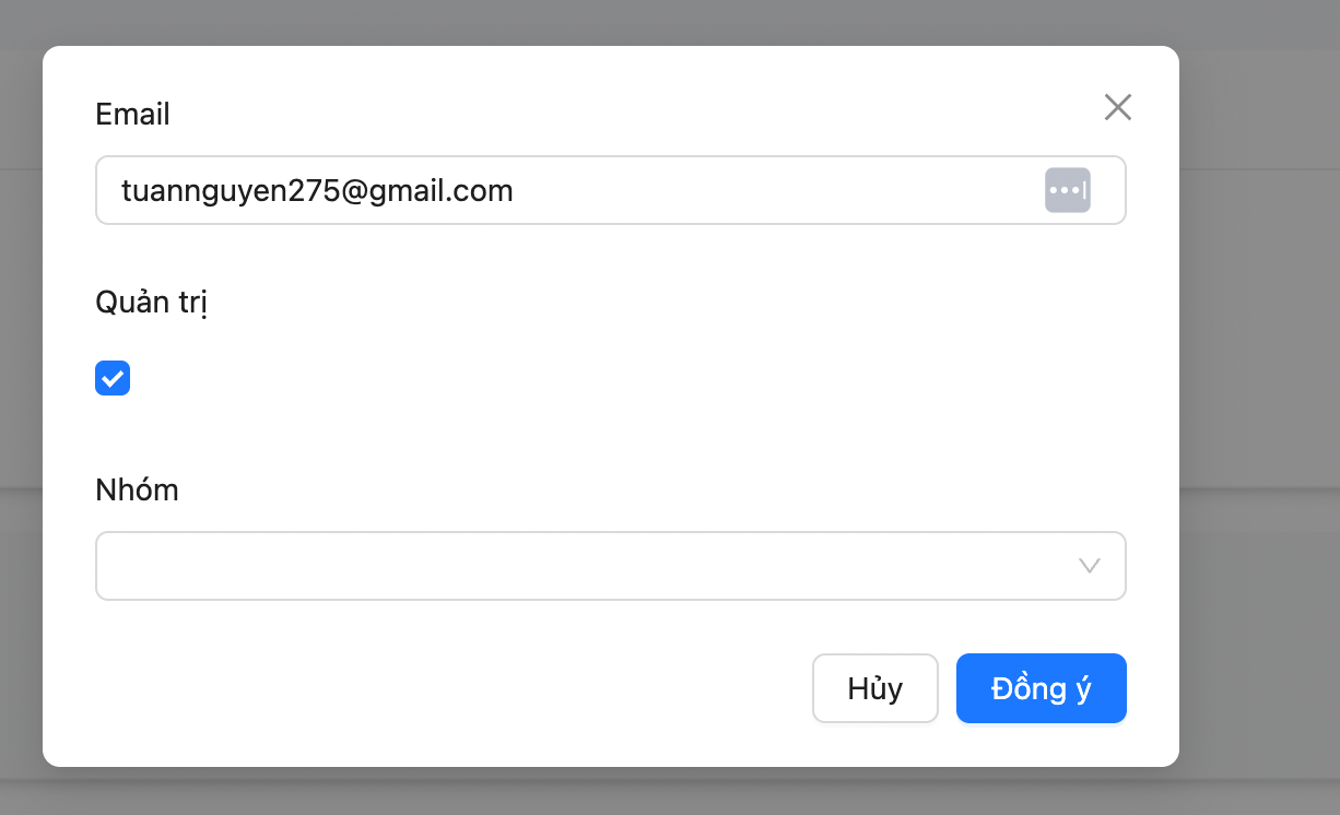 - Nhóm: Quyền người dùng được tạo ở tính năng phân quyền.